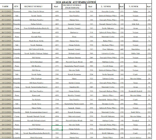 Hastanemizin aylık yemek menüsüne güncel olarak ulaşabilirsiniz.